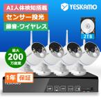 防犯カメラ 監視カメラ センサー投光・録音 ワイヤレス 家庭用 IP66防水 人感 双方向通話 PIR投光 アラーム警報 200万画素 無線 8台まで増設可 2TBHDD付属
