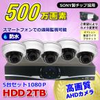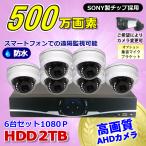 防犯カメラ 500万画素 8CH DVR レコーダー SONY 防水 ドームカメラ 6台 セット HDD 2TB 音声入力 AHD 高画質 録画屋外 屋内 赤外線 夜間撮影
