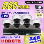防犯カメラ 500万画素 8CH DVR レコーダー SONY 防水 ドームカメラ 6台 セット HDD 8TB 音声入力 AHD 高画質 録画屋外 屋内 赤外線 夜間撮影