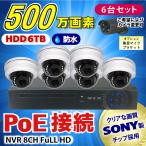 防犯カメラ 500万画素 8CH POE レコーダー SONY製 防水 ドーム型 IPカメラ 6台 セット 音声録音 HDD 6TB LAN接続 高画質 監視カメラ 赤外線 夜間撮影