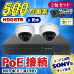 防犯カメラ 500万画素 4CH POE レコーダー SONY製 防水 ドーム型 IPカメラ 2台 セット 音声録音 HDD 8TB LAN接続 高画質 監視カメラ 赤外線 夜間撮影