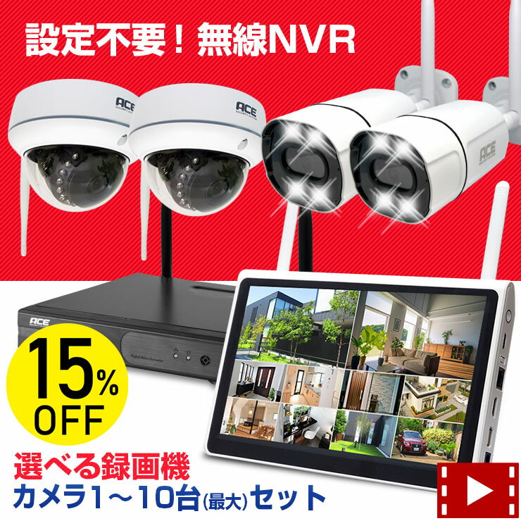 防犯カメラ 屋外 家庭用 監視カメラ セット wifi ワイヤレス 1〜16台 モニター 一体型 Par 【1年保証】