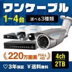 【送料無料】2年保証 防犯カメラ 屋外 セット 1台〜4台 220万画素 有線 防犯カメラセット AHD 高画質 ワンケーブル 録画機 ハードディスク 2TB レコーダー 屋内 室内 ズーム 夜間 防水 広角 録画 動体検知 家庭用 業務用 監視カメラ SET725