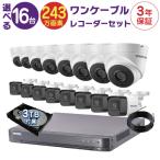 ワンケーブルレコーダーセット 防犯カメラ 監視カメラ 16台 屋外用 屋内用 から選択 16ch PoC電源機能付き 録画機 HDD3TB付属