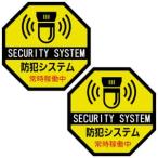 防犯ステッカー セット 2枚セット 防犯システム稼働中 八角形 夜間反射 黄色
