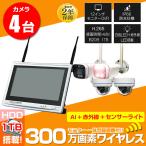 防犯カメラ 屋外 監視カメラ セット 家庭用 wifi ワイヤレス 4台 12インチモニター 一体型録画機セット スマホ遠隔監視 センサーライト リピーター機能