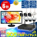 防犯カメラ 屋外 監視カメラ セット 家庭用 wifi ワイヤレス 6台 21.5インチモニターセット 録画機 スマホ遠隔監視 センサーライト リピーター機能