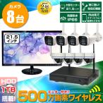 防犯カメラ 屋外 監視カメラ セット 家庭用 wifi ワイヤレス 8台 21.5インチモニターセット 録画機 スマホ遠隔監視 センサーライト リピーター機能