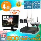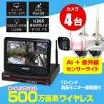 防犯カメラ 屋外 監視カメラ セット 500万画素 家庭用 wifi ワイヤレス 4台 10.1インチモニターセット 録画機 スマホ遠隔監視 センサーライト リピーター機能
