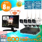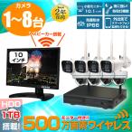 防犯カメラ 屋外 家庭用 ワイヤレス セット wifi 工事不要 500万画素 カメラ 1~8台 モニター 一体型 録画機