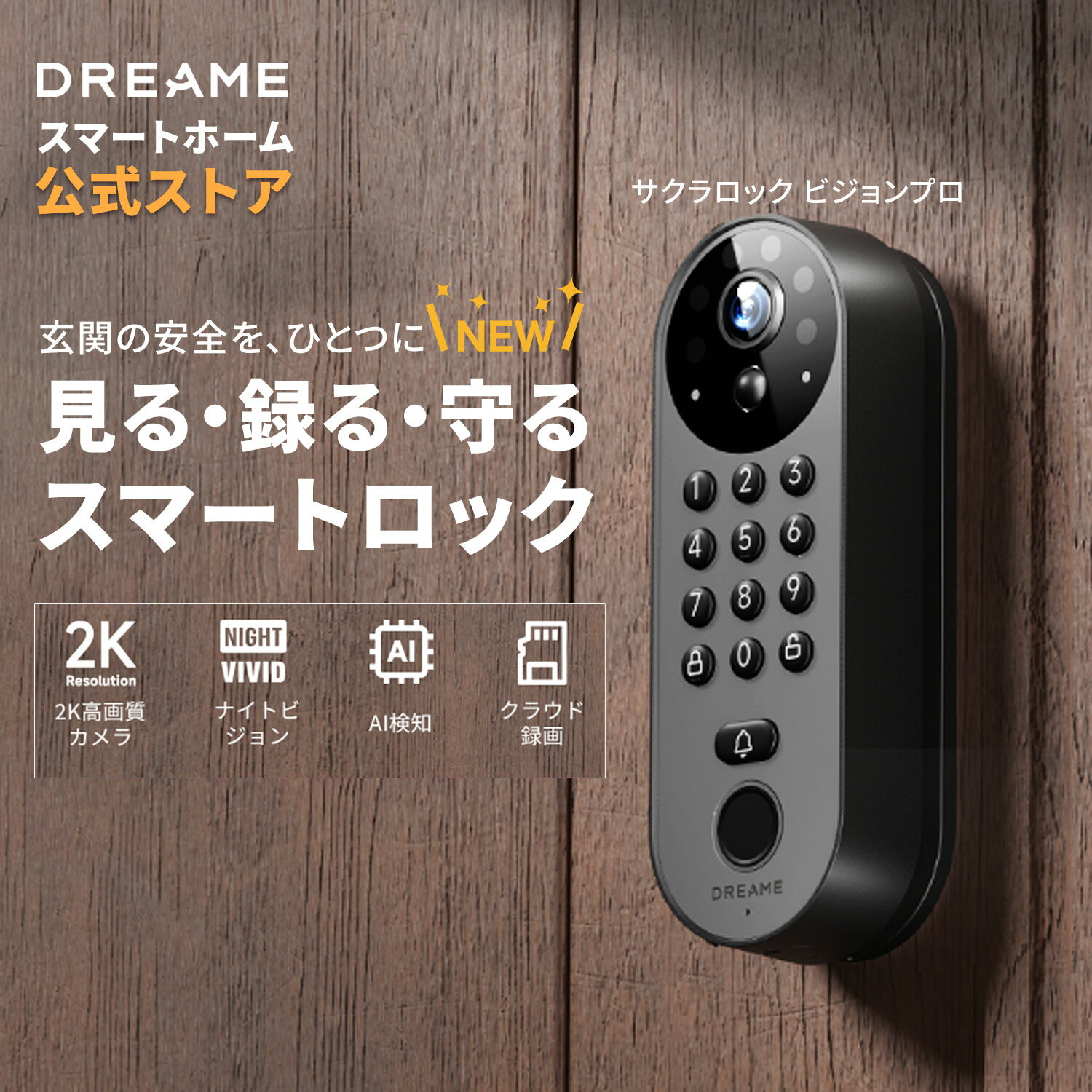 【スーパーSALE 20%OFF| Dreame スマートホーム 楽天市場公式店】 Dreame スマートロック 2Kカメラ搭載 ナイトビジョンモード AI検知 クラウド録画 サクラロック ビジョンプロ ドアロック 鍵 開錠 物理鍵 取付簡単 防犯対策スマートホーム オートロック Alexa/Google連携対応