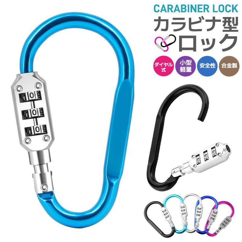 20%OFF【在庫処分★888→710円】カラビナ型ロック 盗難防止 防犯対策 シンプル 着脱簡単 持ち運びやすい アルミニウム合金製 錆びない 自転車用 小型 3桁暗証番号 ヘルメットロック ダイヤルロック ダイヤル式 地球ロック 短時間の駐輪用 切断対抗 超軽量 鍵不要 カギ