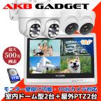防犯カメラ ワイヤレス 屋外 セット 500万画素 モニター付き Wi-Fi 監視カメラ 2台〜10台 1TBHDD内蔵 IP66防水 録画機能付き 音声録画 PTZ マイク付き ドーム型