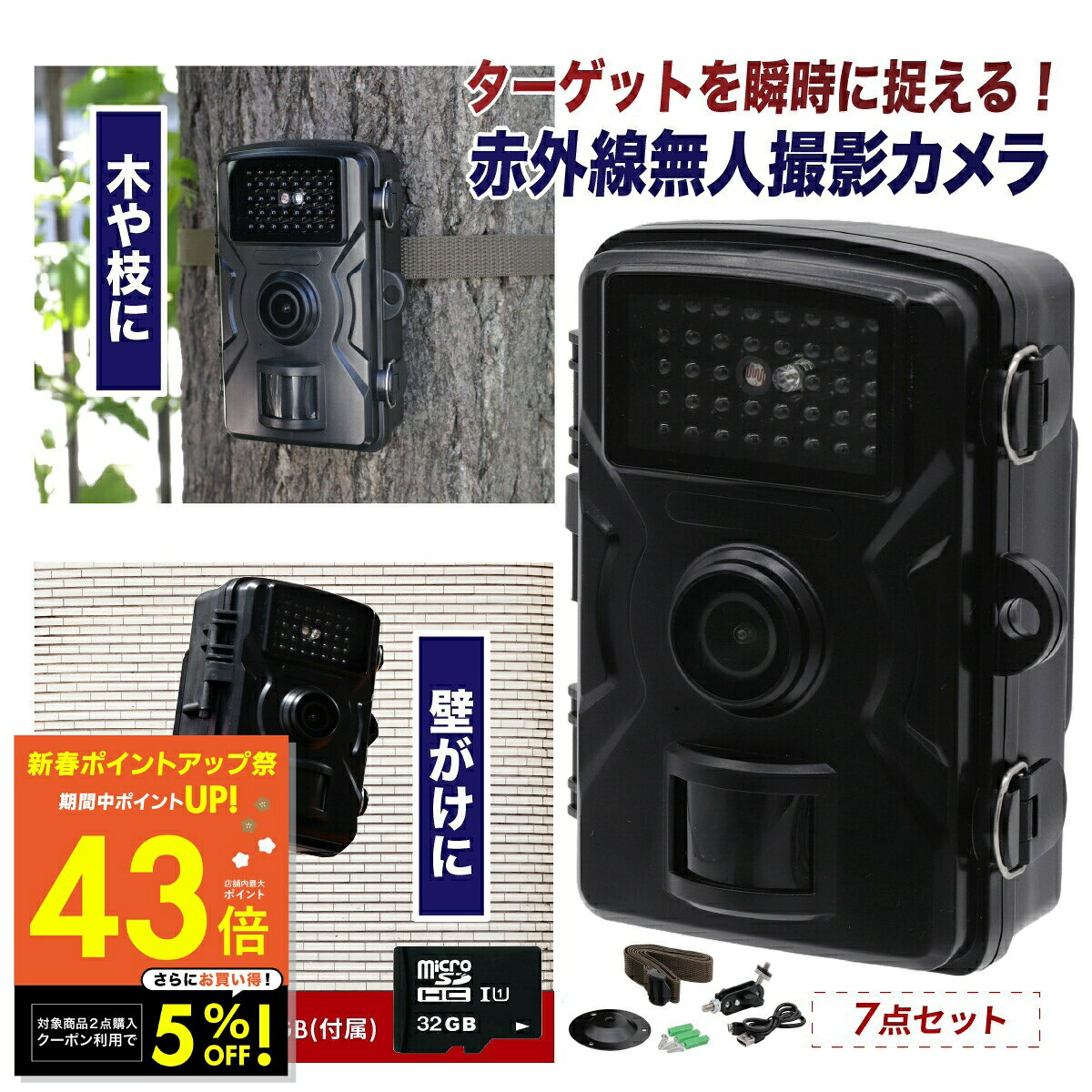 【最大P43倍&クーポン!! 1/1 0:00〜】防犯カメラ 屋外 監視 自動撮影 留守 駐車場 玄関 物置 庭 赤外線 無人カメラ カメラ 撮影 音声付き動画 マイク内蔵 防犯対策 害獣対策 夜間撮影 レコーダー 自宅 庭 ベランダ 駐車場 ゴミ置き場 農場 畑 倉庫 送料無料 p10 初売り