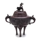 香炉 特大間取 瑞峰作 青銅製 古銅色 高岡銅器 キリン おしゃれ かわいい インテリア 仏具 モダン 蓋付き 茶道具 お香 日本製 送料無料