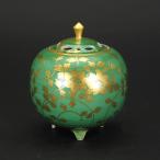 九谷焼 吉田美統 香炉 金襴手花唐草文 緑