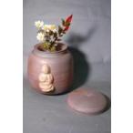 H-1-1 焼締 大長仏 骨壷 阿弥陀如来座像付き 7号 文部大臣奨励賞受賞作家 荒川明作 木箱付き