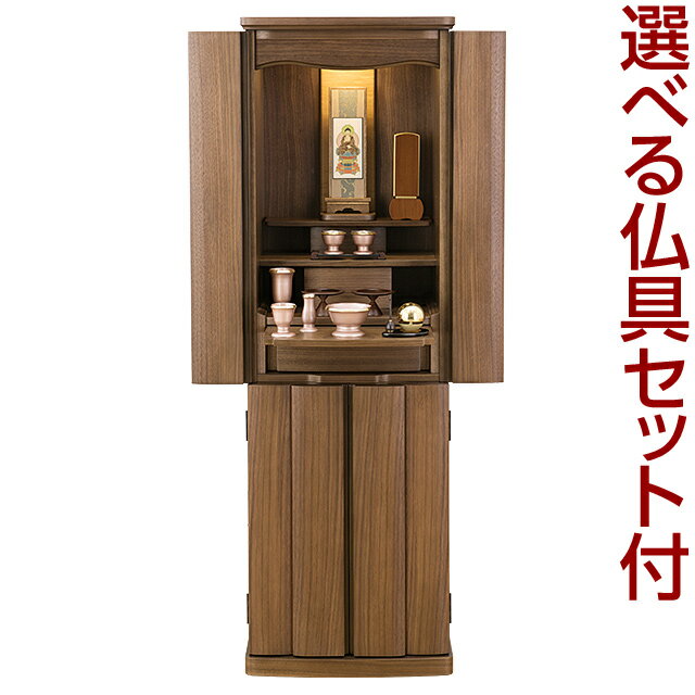 【仏壇】モダン仏壇 エデン 台付型(床置き) ウォールナット 40号 仏具セット付き 高さ120cm×巾44cm 国産(日本製)【送料無料】【設置無料】【仏壇 モダン 仏具 和室 洋室 リビング マンション 家具調仏壇 納骨仏壇 骨壷 骨壺 収納】