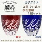 KOEDO川越硝子 切子グラス 万華 ぐい呑み 桜花飛翔 銅赤・瑠璃 2個セット ‐ おちょこ お猪口 ぐいのみ 日本酒 ガラス 赤 青 川越 川越市 切り子 箱入り 直送