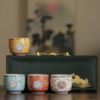 おちょこ 4点セット 総柄 花柄 酒器セット お猪口が4個セット 4色 ぐい呑み ギフトボックス付き 日本酒 日式 和風 和柄 エレガント