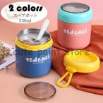 弁当箱 スープポット おしゃれ お弁当箱 保温保冷 ランチジャー フードポット スープジャー 水筒 学校学生 会社出勤 食事用 入社 便利 スプーン付き 530ml 2色