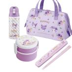 シナモロール パステル花柄 お買得4点セット 丸型 フォーク付 2段 お弁当箱 箸&箸箱 水筒 ランチバッグ セット