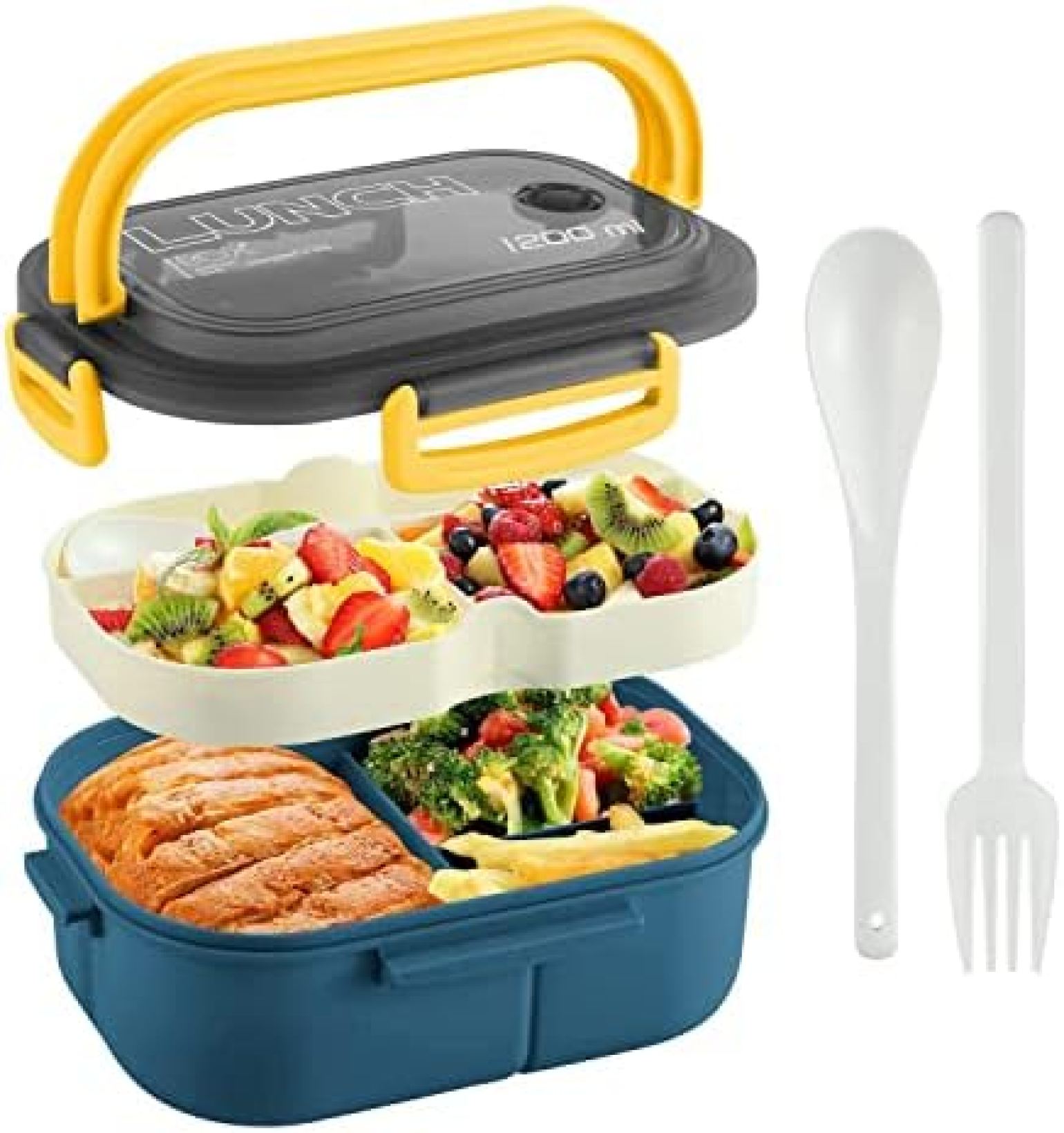 【20%OFFクーポン】弁当箱大人のランチボックス 1200ML スプーン&フォーク付き二段弁当箱 大容量フードコンテナ 漏れない