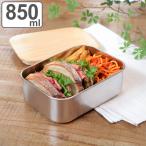 お弁当箱 ステンレスランチボックス 1段 850ml 木蓋付き ( ランチボックス 弁当箱 一段 ベルト付き シンプル シルバー 大容量 )