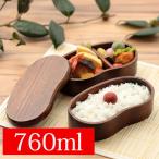 送料無料 お弁当箱 760ml 2段 天然木製 くりぬき そらまめ 二段 弁当箱 漆塗りモダン 中学生 高校生 男子 男性 仕切り ランチバンド付き 高校男子