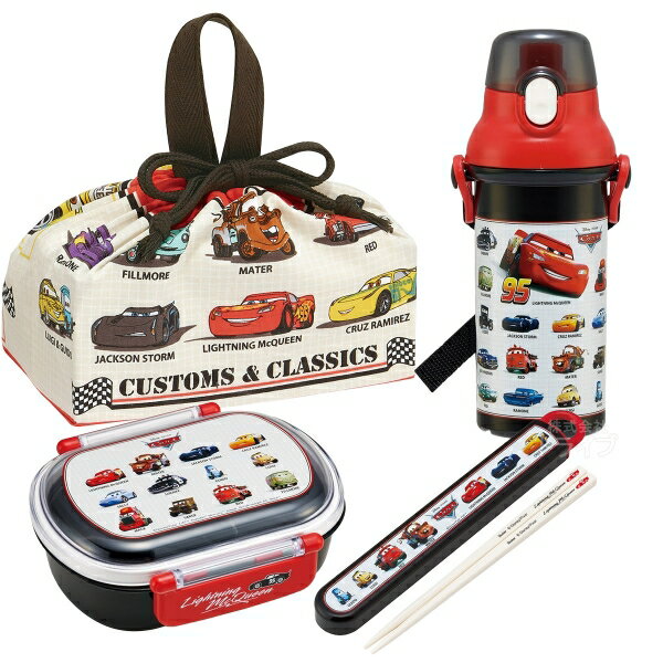 【12月中旬入荷予定】カーズ 25 お買得4点セット 抗菌 お弁当箱 中子付 360ml 箸&箸箱 巾着 プラ水筒