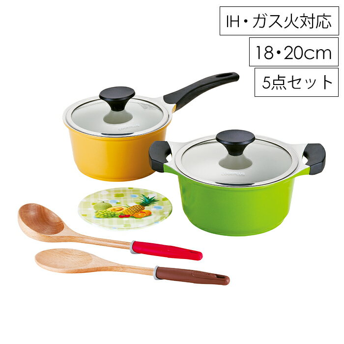 【楽天スーパーSALE10%OFF】鍋セット ih対応 片手鍋 18cm 両手鍋 20cm お玉 ヘラ 鍋敷き 調理器具 5点セット IH ガス火 オール熱源 セラミックコート キッチンツール 便利 料理 調理鍋 なべ 鍋 調理器具 新生活 一人暮らし