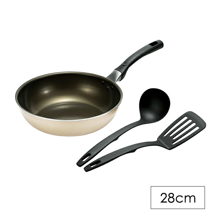 [☆7%offクーポン発行中☆-12/04まで] 炒め鍋 28cm ふっ素加工 フライパン ガス火 IH お玉 ターナー付き