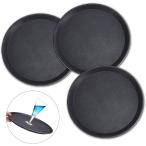 トレンチ お盆 滑らない ノンスリップトレー サービス トレイ 3枚セットお盆 業務用 (ブラック, 35cm)
