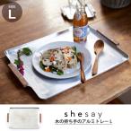 ノスタルジックな木の持ち手のアルミトレー (L) アルミトレー 天然木 取っ手付き インテリア かわいい 41x28.5cm お盆 トレイ アルミ 長方形 カフェ shesay