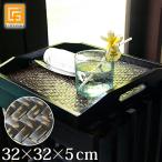 トレイ(チーク&バンブー)32×32×5cm持ち手付き アジアン雑貨 バリ トレー 取っ手付き おしゃれ 木製 お盆 カフェ サロン
