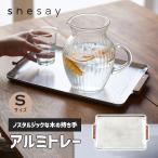 ノスタルジックな木の持ち手のアルミトレー (S) アルミトレー 天然木 取っ手付き インテリア かわいい 35.5x22.5cm お盆 トレイ アルミ 長方形 カフェ shesay