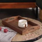 木製トレー お盆 天然木 黒クルミ 取っ手付き 長方形 ランチトレイ カフェトレイ KNK(株) 茶具 和風 ブラウン アクセサリートレイ 小物置き