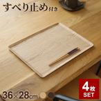 木製トレー ノンスリップ M(36×28cm) 4枚セット ナチュラル/ブラウン | お盆 滑らない トレイ おしゃれ 滑り止め ナチュラル 膳