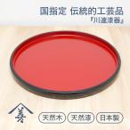 お盆 トレー 木製 高級 和風 丸型 黒 赤 日本製 漆 塗り 川連 漆器 おぼん 和 お菓子 大きい 九寸 丸盆