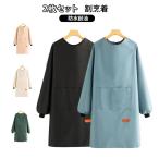 かっぽう着 無地 レディース 防水 保育士 袖付き メンズ 大きいサイズ エプロン ポケット 長袖 保育士 料理教室 キッチン 2枚セット エプロン