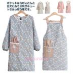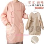撥水加工 割烹着 かっぽう着 レディース エプロン おしゃれ シンプルエプロン 袖付 ロング丈 体型カバー お尻が隠れる 保育士 介護士 かぶりガーデニング 料理