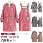 袖カバー 女性用 エプロン 長袖エプロン 防水 作業着 かっぽう着 割烹着 裏起毛 大きなポケット あったか 袖口リブ 裏ボア 冬用エプロン 大きいサ