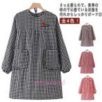 爆買 おしゃれ かっぽうぎ 柔らかい 可愛い 長袖 かっぽう着 レディース 汚れ防止 チェック柄 割烹着 前開き 袖付きエプロン ポケット付き 通気性 可愛