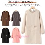 ロング割烹着 かっぽう着 かっぽうぎ おしゃれ レディース エプロン 春 秋 冬 袖付エプロン 動きやすい 幼稚園 保育士 介護士 家事 かぶりガーデニング 料理教室