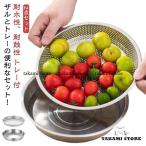 水切り 皿 ザル 丸型 ステンレス 盆ざる 盛ざる トレー付 平ザル 油切り 水切りざる お皿のざる 2点セット そば 揚げ物 下ごしらえ 食器 丸ざ