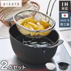 鉄製 揚げ鍋 aikata セット ざる フタ 日本製 アイカタ 燕三条 IH対応 ih ガス火 対応 天ぷら鍋 コンパクト 小さめ 楕円 鉄鍋 少量 揚げ物 ヨシカワ 送料無料