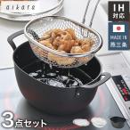 ヨシカワ aikata 鉄製揚げ鍋+専用ザル+フタ 3点セット 日本製 燕三条 ガス火 IH対応 楕円 オーバル 天ぷら鍋 揚げ鍋 ざる ザル フタ 蓋 フライヤー