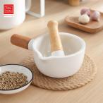 石臼セット、乳鉢 すり鉢 ボウル すり セラミック 木製のハンドル 薬臼 薬研 料理 調味料 漬物作り 台所用品 すり鉢とすりこぎセットミニ キッチンツール すり鉢