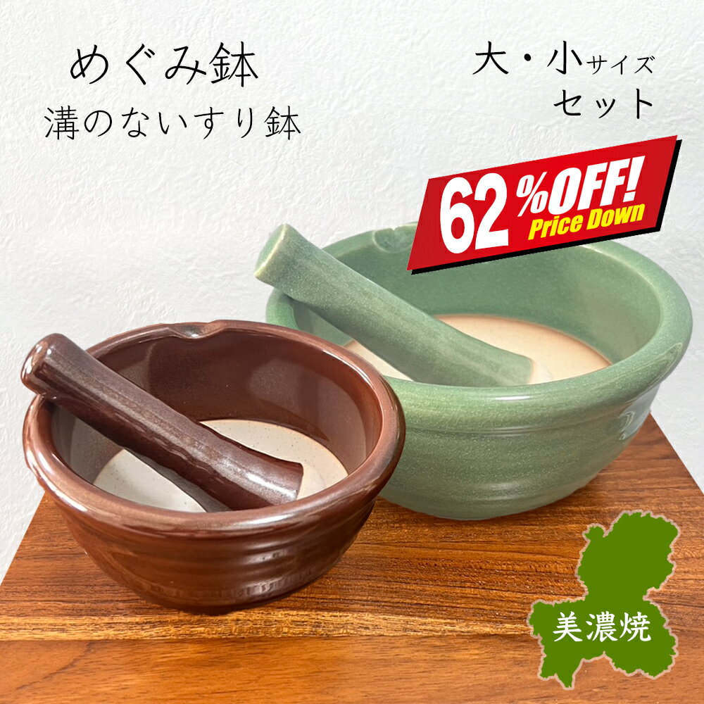 【62%OFF】 楽天スーパーSALE 溝のないすり鉢 めぐみ鉢 大・小 セット【美濃焼】 隆月窯 目詰まりしない すりこぎ 棒 セット めぐみばち 片口 離乳食 ギフト おしゃれ 洗いやすい スパイス ごま 胡麻和え 食卓 つぶす 砕く 器 マーフィー岡田 ギフト 溝ない