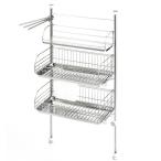 水切り かご 水切りトレー コップ 皿 流し台 シンク上 ラック つっぱり 収納 突っ張り 伸縮 3段 大容量 ステンレス 隙間 スリム タオル ふきん 手拭き パイプ棚